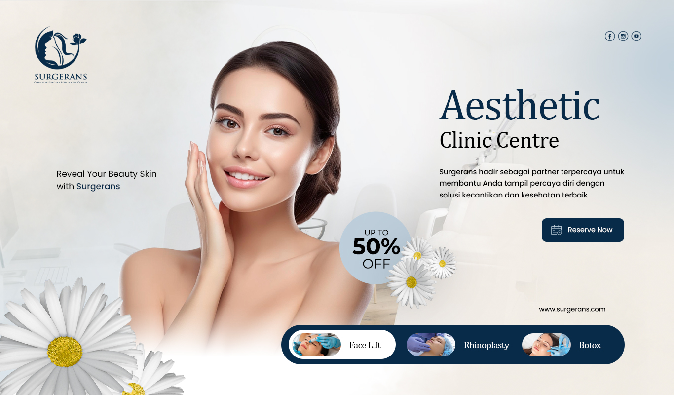 Ingin tampil lebih percaya diri dan memukau? Di Surgerans, kami hadir untuk mewujudkan transformasi impian Anda! Dengan teknologi modern dan tim ahli, kami siap membantu Anda tampil lebih cantik, sehat, dan percaya diri.